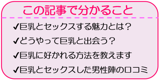巨乳とセックスしたい。男性のなかにはこれほどまでにつよい欲求は他にはありません。しかし多くの男性は巨乳とセックスできていません。それはやり方が間違っているからです。なので今回は巨乳とセックスできる方法を解説していきます!