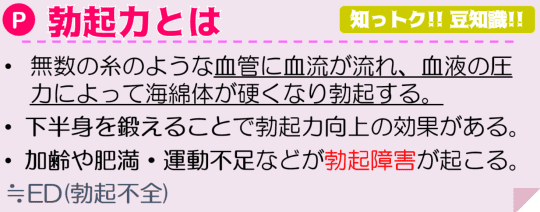 その結果、勃起力が向上してちょっとやそっとのことではへこたれないペニスになるのです。