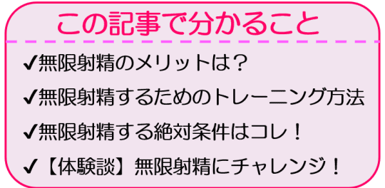 今回は私の実体験を交えつつ、何度射精しても射精できるようになる無限射精の方法を徹底的に解説していきますので、ぜひ参考にしてみてください。