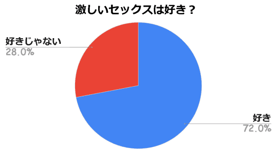 このアンケート結果を見てください。これは、女性100人に「激しいセックスが好きか」ネット上で独自にアンケートを取った結果です。