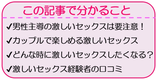激しいセックスが必ずしも気持ち良いとは限らない!?激しいセックスをやってみたい!!と憧れる人もいるかと思いますが、その実態はどうなんでしょうか??激しいセックスに興味のある人、今度やってみようと思っている人には、是非参考にしてほしい記事です!!