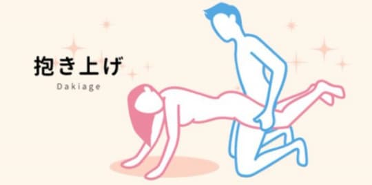 抱き上げの体位とは、腕立て伏せの体勢の女性の下半身を男性が自分の腰まで持ち上げ、後ろから挿入する体位のことです。