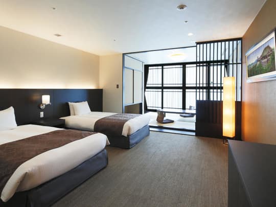 市バス「祇園」より徒歩2分、地下鉄東西線「東山」2番出口より徒歩5分、京阪本線「祇園四条」7番出口より徒歩7分。清水寺、八坂神社などの観光地が徒歩圏内で、観光に便利なホテルです。