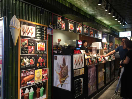 SASAYA IORI+桑や(ソフトクリーム他)、茶茶屋(タピオカ)、おのみやす本舗嵐山(抹茶ソフト)、らんでんや(団子)