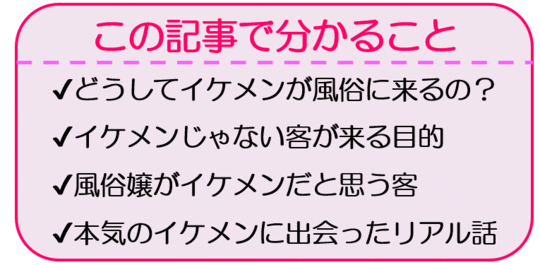 キモイ人が風俗に遊びにくるのはなんとなくわかりますが、明らかにモテそうな男性が高いお金を払って風俗に遊びにくるのは不思議ですよね。そんな不思議な理由と要注意イケメンのお客さんを解説します。これさえ読めばイケメンがきても焦らず立ち振る舞いができるようになります。