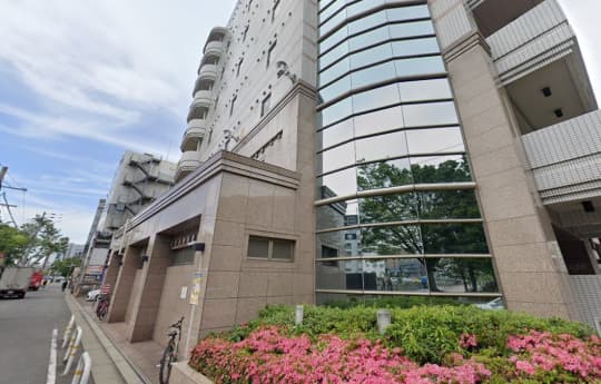 中洲の端っこまで歩いた頃、「ティアモ」のビル・パラシティ博多が見えてきました。このビルの8階です。所要時間は8分ほどです。