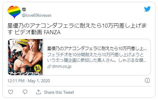 『星優乃のアナコンダフェラに耐えたら10万円差し上げます』はこちらのリンクから