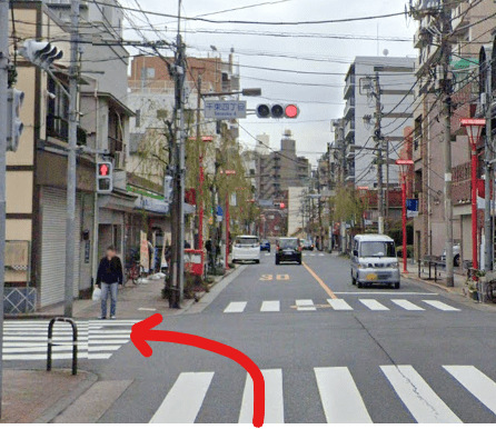 吉原コートダジュールまでは吉原大門交差点から徒歩4分。ガソリンスタンドを左に曲がり、道なりに真っ直ぐ進みましょう。