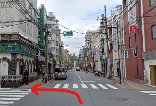 吉原EXEまでは吉原大門交差点から徒歩4分。ガソリンスタンドを左に曲がり、道なりに真っ直ぐ進みましょう。