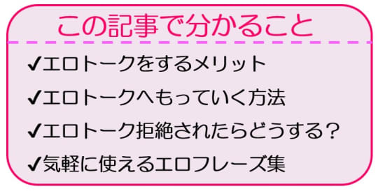 エロトークが苦手な人や、どうやって女性とエロトークに持ち込めば良いかわからない人は参考にしてください。