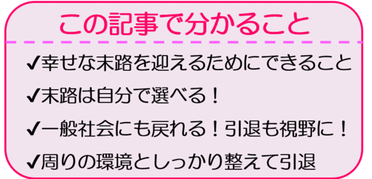 しっかりと先を見据えて、若いうちに稼げるだけ稼いでスパッと辞めるのが理想かと思います。