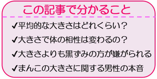 女性の皆さん!自分のまんこの大きさを気にしたことはありませんか?小さい方がすっきりして見える。大きいほうがむっちりしていてエロい。人の趣味趣向は様々ですが、まんこの大きさはどれくらいがいいのか焦点をあてていきます。女性の方は必見です!