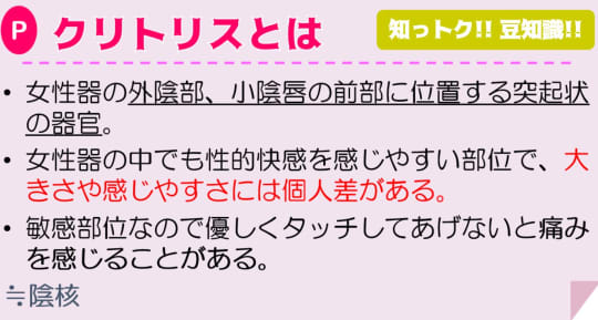 よくオナニーやセックスの際にも重要視される部位ですね。