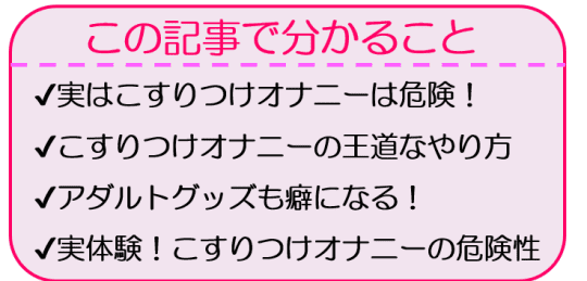 さて、こんな状態でこすりつけオナニーを日課にしていくと様々な危険が出てきます。