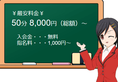 サービスの時間帯によって利用料金が変化するシステムで、最安値が50分8,000円となっています。その他の料金については以下の通りとなっています。