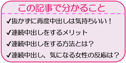 しかし、抜かずの中出しができるようになれば、膣内で射精する気持ちよさを短時間で何度も感じられるのです。