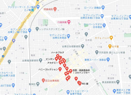 吉原は住所で言えば、「台東区千束4丁目」で、このエリアに店がひしめいています。まさに同業者同士、しのぎを削っているだけに、お値段が高いですが、嬢の質も高く、サービスもいいと言われています。