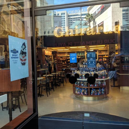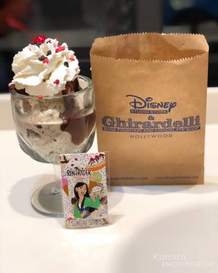 ランチの後は、ディズニー・ソーダ・ファウンテン・アンド・スタジオ・ストアへ行ってみましょう。こちらは有名チョコレートメーカーのギラデリとディズニーがコラボしているお店で、チョコレートのデザートもいただけますし、ディズニーのグッズも買えます。無料でチョコレートの試食も配っていましたよ。