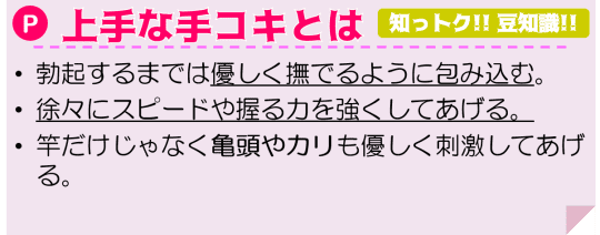 さらに、基本ができただけでは男性を喘がせるほど気持ちよくすることも、手コキだけで射精させることもできません。