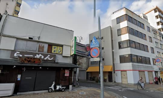 しばらくすると左手にこのラーメン屋さんが見えます。ここを左です。