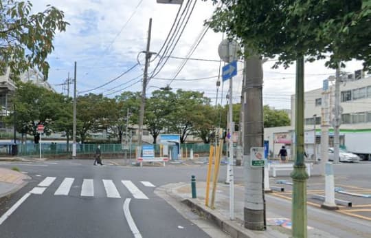 右側にファミリーマートが見えたら、その裏側に回り込むように、道なりに川沿いを進みます。