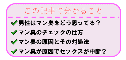 次から紹介するマン臭の原因と、対策についてご説明するのでしっかりと確認していきましょう!