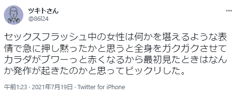 当時はセックスフラッシュの言葉を知りませんでしたが、ネットサーフィンをしているふとした瞬間に知って当時のことを思い出したのを覚えています。