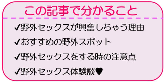 「野外セックス」この言葉を聞いたことがある人は多いでしょう。家の中ではなく、外で行うセックスのことです。いつもとは違う雰囲気が味わえるので、結構興奮できるんですよ!