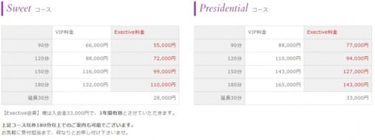 お値段は最低90分50000円で最高80000円になります。1日1人のお客さんしか接客しないシステムなので妥当な値段だと思います。