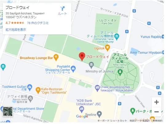 最寄駅は「Mustakillik maydoni」となっていて、路線は「Olmazor - Buyuk Ipak Y」となっています。