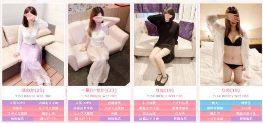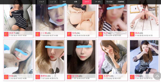 料金 | 70分8,000円~ | 60分14,000円~ | 60分14,000円~ | 60分16,000円~ | 60分15,000円~ | 60分11,000円~ | 60分16,000円~ | 60分15,000円~ |