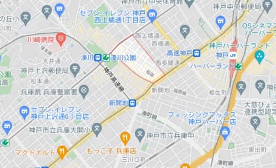 ソープ街である神戸の福原町は、JR神戸駅の西側に位置します。
