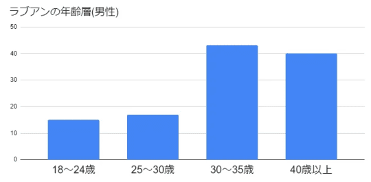 まずはこちらのグラフをみてください!これは、ラブアンの年齢層(男性)を調べた結果となります。