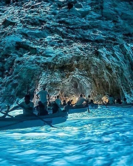 カプリ島の青の洞窟は入り口がとても狭く、幅2メートル高さ1メートルしかないので、風がある日は波が高くとても危険なのです。そのため船頭さんも海の様子を見て入れるかを検討します。雨の日も水位があがるので、ほぼ入れない日になるでしょう。雨が少ないのは夏の6月から8月です。天気予報を見て行きましょう。