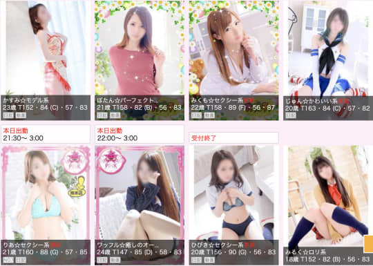 年齢層は全体的に20歳〜30歳までが中心となっていて、色白のフワフワ系がメイン。
