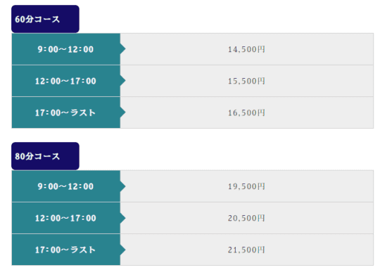 ◆60分 14,500円/15,500円/16,500円