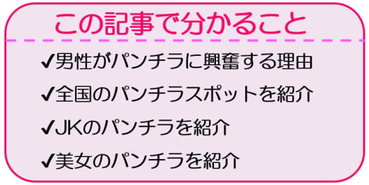 本記事では、まず「パンチラ」について深く掘り下げていきます。「何色のパンティが多いの」「なぜ男性は興奮してしまうの?」など、詳しくお伝えします。そして、風でスカートがめくれてパンティが見えやすいスポットをご紹介します。「そんな所あるの?」と疑問に思った方がいるかもしれません。実はあるんです!驚きましたか。気になるのであれば、ぜひ訪れてみてください。