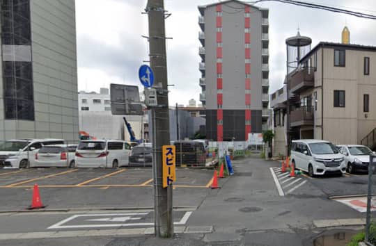 狭い住宅街を抜けるとこのような場所が見えますので、右折してください。
