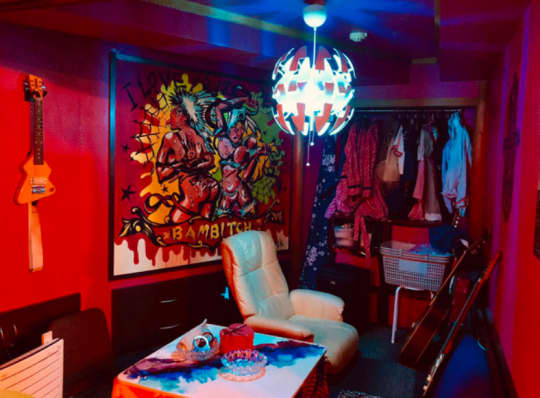 まず1つ目のBAMBITCHの特徴は、赤を基調としたきらびやかな店内だということです。また内装はカウンターがメインで、ソファーに個室のプレイルームもちゃんと用意されています。