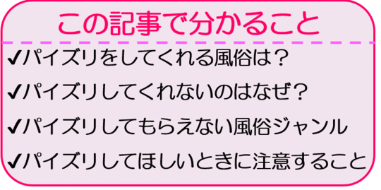 こういったソフトサービスを売りにしている風俗店ではパイズリをしてくれないことが多いので注意しましょう。