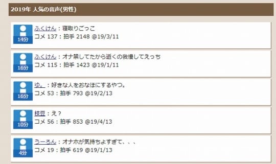 2019年KOE-KOEで男性版人気ランキングインしているオナニー投稿ボイスです。