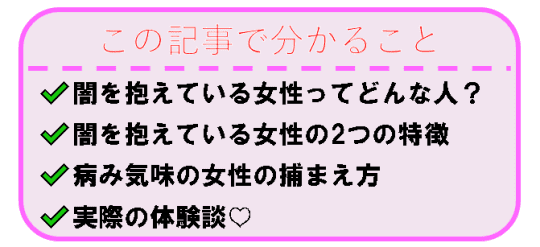 今回はこの闇を抱えた女性の特徴と捕まえ方について紹介します。