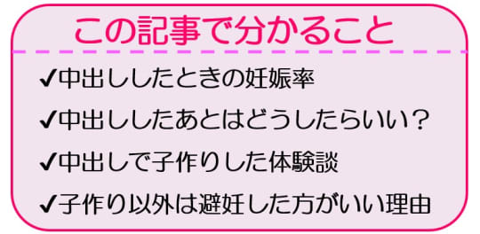 今回は、子作りの為に中出しを解禁するにあたって、妊娠の可能性や中出しをした後の処置の方法など、セックス時の中出しについてのアレコレについて解説していきます。