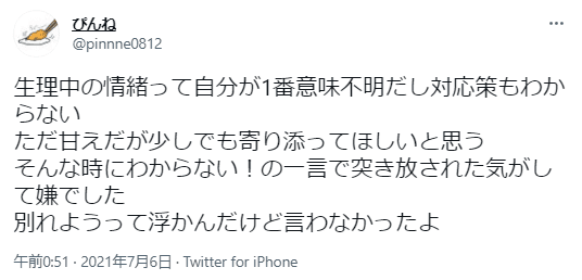 私も付き合っていた彼氏と生理中に喧嘩をしてそのまま別れたこともあります。