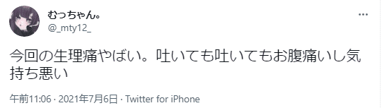 私は生理痛の中でも酷い方で、生理が始まる前からイライラし始め、始まると寝込む日もあるほど辛いです。