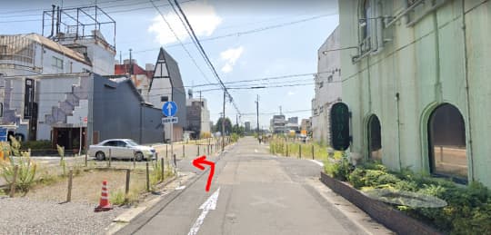 こちらの横断歩道を渡り、矢印方面へ。
