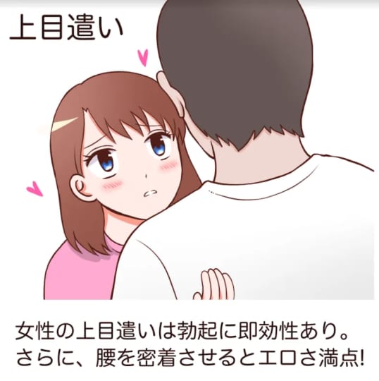 上目使いで反応が良ければ、腰をグリグリ相手に押し付けるとさらに興奮してくれます。