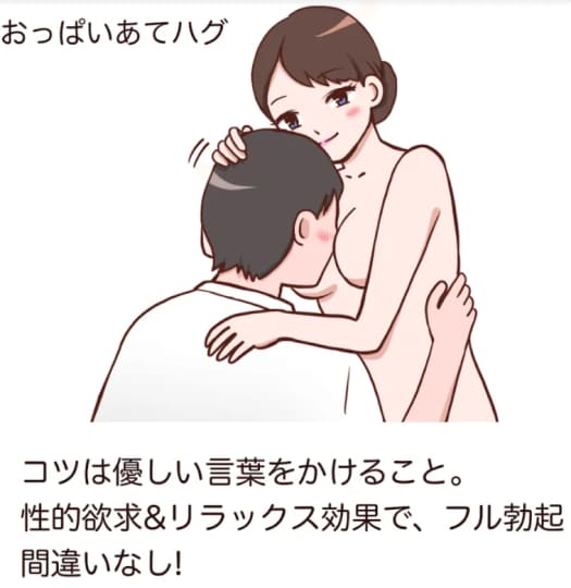 おっぱいに顔を埋めることで性的欲求と、甘えられて落ち着く精神的な安心感で勃起するはずです。