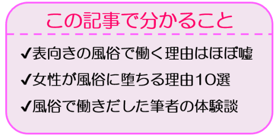 女性が風俗堕ちする理由10選!実体験を暴露!