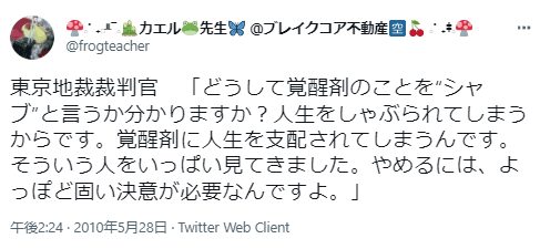 シャブセックスの怖さを物語る言葉ですよね。みなさん、絶対に手を出してはいけませんよ!